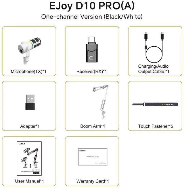 Innovative Wired/Wireless modes, Single and Dual Channels Options. ^^ Cardioid Polar Pattern, Anti-noise Large Diaphragm Dynamic Mic. ^^ XLR/USB-C Digital/Analog Outputs, Wide Compatibility. ^^ 48kHz/24bit Recording, Built-in Sound Card, One-key Calmix Denoise. ^^ Support 4-level Gain Control and Step-less Monitoring Volume Adjustment.