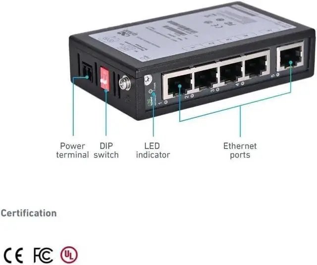 ^^ Fully industrial design: wide temperature and wide voltage, metal housing with IP30, designed to withstand a high degree of vibration, shock, operating with a wide temperature range (- 40 75 C (- 40 - 167 F) for harsh environments, input voltage 24VDC, industrial circuit protection, MTBF>35 years, EMC level 3. ^^ Support standard DIN-rail and wall mounting, compact-size for easy fitting in racks and cabinets. ^^ The QoS (Quality of Service) function and BSP (Broadcast Storm Protection) can be enabled or disabled through dip switch. ^^ Plug and play, suitable for various networks, such as home office, computer room, warehouse or other the needs of harsh industrial environments. The ISE2005D complies with FCC, CE, ROHS, and UL standards. ^^ Offers 3 years warranty and free technical support.