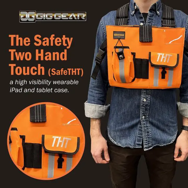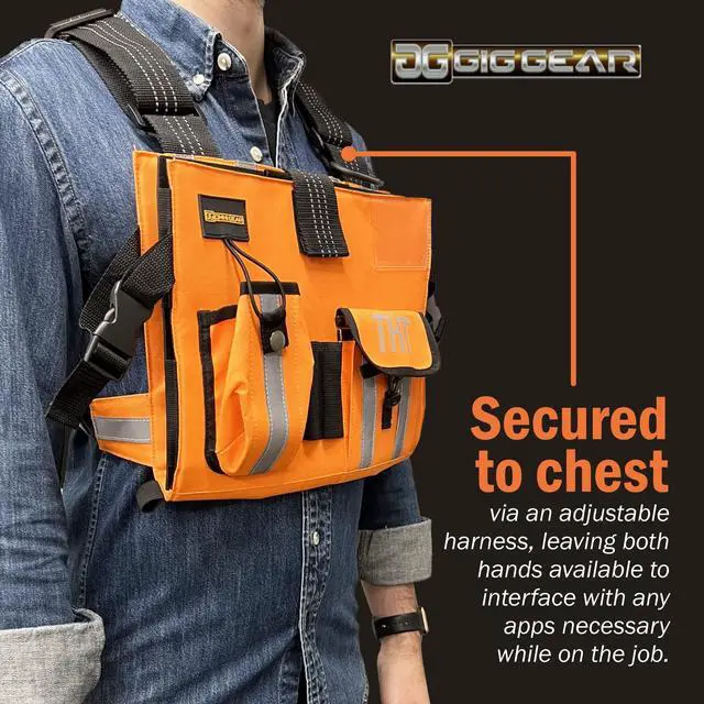 Gig Gear Two Hand Touch Tablet Chest Harness for iPad & Samsung Tablets, Workplace Safety & High Visibility Tablet Carrier & Harness for 12.9 Inch Mobile Device - iPad Chest Pack