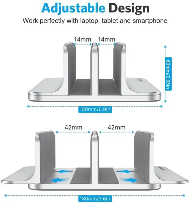 Adjustable Size: Adjustable width compatible with various laptops as well as the thickness of notebooks varying from 0.55in / 14mm to 1.65in / 42mm.