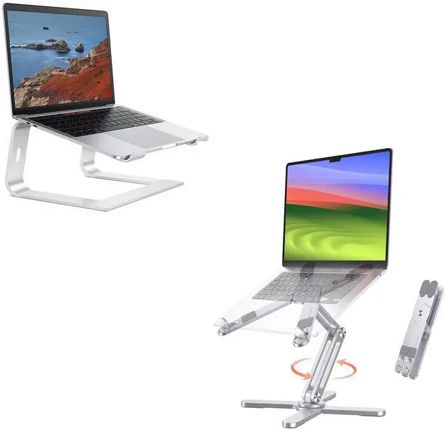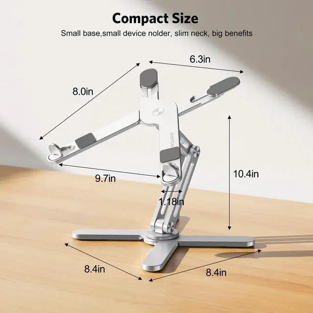 360° Rotatable & AdjustableDesigned with a 360° rotatable axis, this laptop stand allows you to easily share your screen with someone sitting across the room.You can adjust the angles and heights according to your needs. This perfect design will increase your work efficiency when collaborating with others.