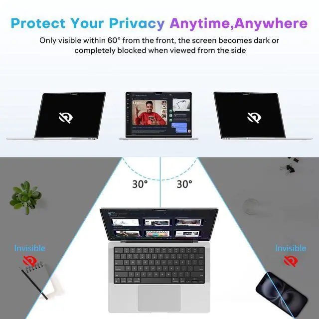 Excellent Privacy ProtectionThe screen protector uses advanced micro-louver technology to instantly block side views. With a simple application, the screen content is instantly visible only to the user facing forward, effectively preventing "visual snooping" from colleagues, passers-by at the cafe, or even your seatmate on an airplane, providing privacy and security for your laptop screen. You can adjust t
