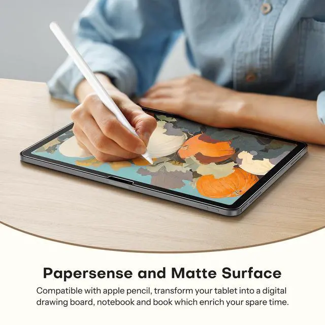 Anti-glare and Anti Fingerprint: The Papersense matte iPad Pro 13 inch M4/M57th Generation (2024 Released) screen protector helps reducing oil, smudges and fingerprints from daily usekeeping your eyes health and prolonging the lifetime of your iPad. Meanwhile, experiencing a delicate frosted finish that reduces light refraction, without worrying about glare when drawing outdoors.