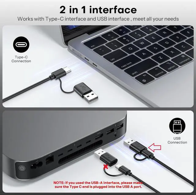 Dual Interface Keyboard ( Type-C and USB A Interface ) :you can choose the required interface according to your device. When using USB-A interface, the Type-C end MUST be inserted into the USB A port. Make sure your device battery power is sufficient, low power might affect keyboard and mouses function.