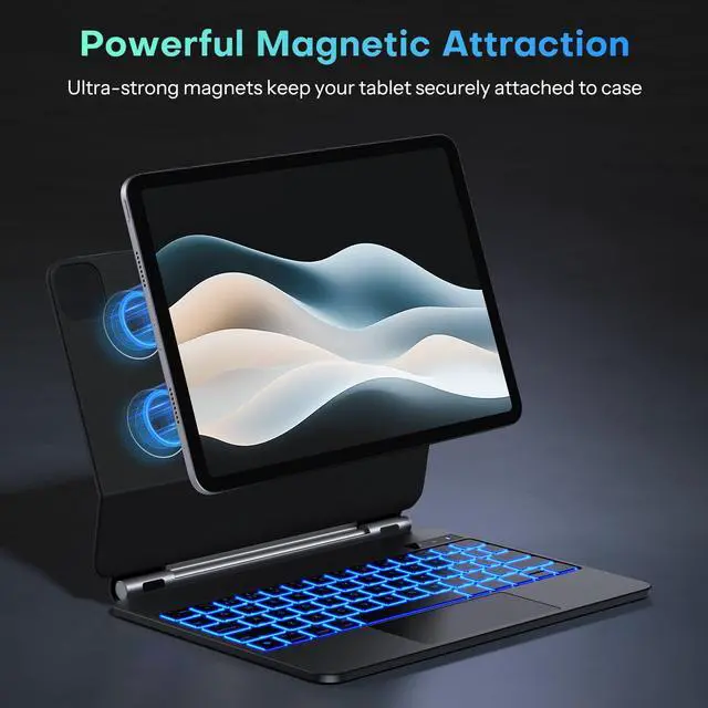 OMOTON Bluetooth Magnetic Keyboard Case for iPad Pro 11 inch (M4 2024), with Magnetic-Stand, Multi-Touch Trackpad, 7 Colors Backlight Wireless Keyboard for iPad Pro 11 inch (5th Gen), Black