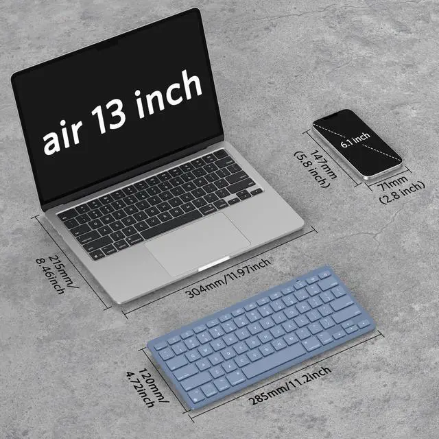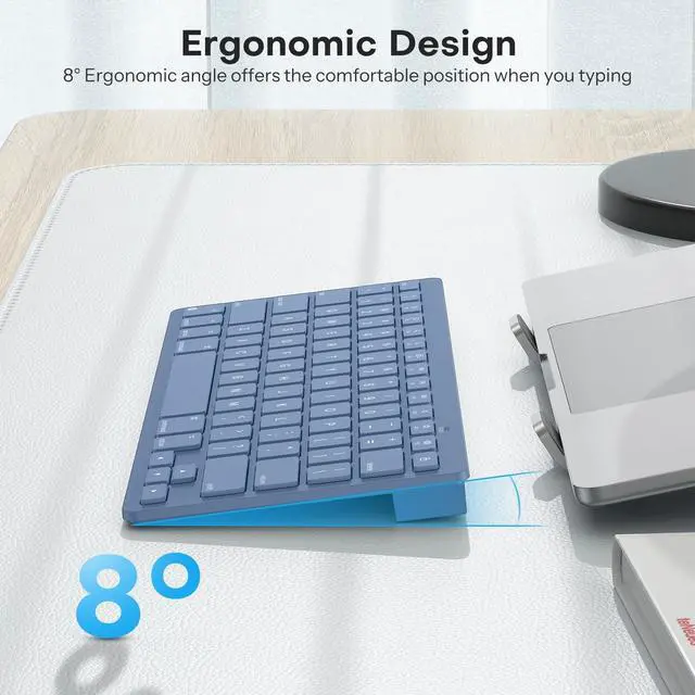 Ergonomic & Stable Typing: This wireless keyboard( 11.2 x 4.7 inch) offers a comfortable 8tilt angle position. Four bottom rubber pads ensure firm grip and comfortable all-day use.
