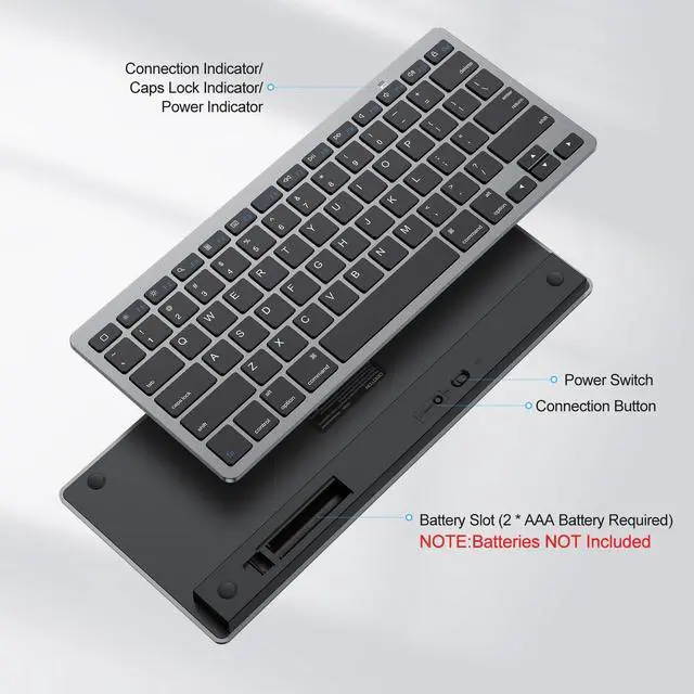 Energy Saving Mode: This keyboard is powered by 2 * AAA batteries (NOT Included). It uses automatic sleep technology to achieve automatic sleep mode after 30 minutes of non-use. You can wake up the keyboard by clicking any key to start normal operation ^^ Stable