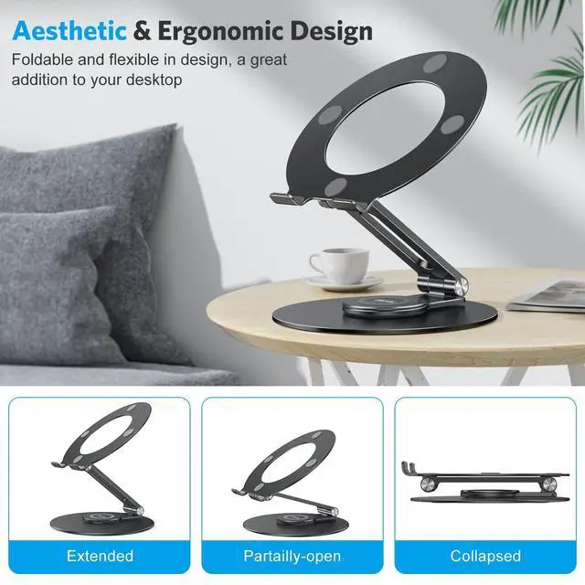 ROTATABLE & ERGONOMIC: Featuring a 360 rotatable axis connecting with the base, this laptop stand allows you to swivel your laptop to any angle. It elevates your laptop to your eye level to fix your posture and reduce your neck and back stiffness.