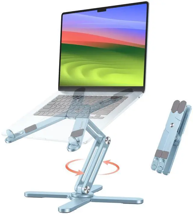 OMOTON 360 Rotating Laptop Stand Riser for Desk, Ergonomic Foldable Computer Stand Adjustable Height Angles for Collaborative Work, Easy Storage Fit Macbooks,All Laptops up to 16 inches,Sky Blue