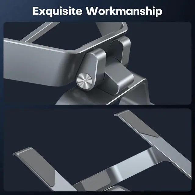 Ergonomic designThis laptop stand adopts ergonomic design, easy to adjust the laptop to the ideal angle, effectively relieve the pressure on the neck, shoulders and back, more comfortable for sedentary offices ^^ Efficient Heat DissipationAluminum alloy material + overhead design, the bottom of the non-blocking to enhance air circulation, to help laptop rapid heat dissipation, more stable operation ^^ Non-Slip & StableThe stand is equipped with non-slip silicone pads on both the panel and base, providing a secure and wobble-free support while protecting your device from scratches, typing more peace of mind ^^ Strong Load CapacityThe laptop stand is made of high-strength aluminum alloy, sturdy and durable, with a load-bearing capacity of up to 5 kilograms, so you don't need to worry about your laptop tilting or shaking during use ^^ Saving Desktop SpaceSelf-storage space, you can place the keyboard, mouse and other office supplies under the laptop stand, to keep the desktop clean, perfect for those with limited desk space ^^ Wide CompatibilityThe laptop stand is compatible with all 12- 17.3 -inch laptops and tablets, such as Fit for MacBook Air, MacBook Pro