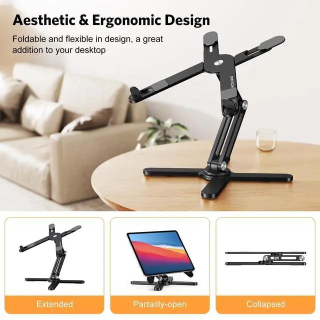 Warm Reminder: To ensure the safety of your device, please remove your laptop or tablet from the stand before adjusting the height or angle