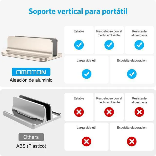 OMOTON Vertical Laptop Stand Holder, Desktop Aluminum Stand for MacBook with Adjustable Dock Size, Fits All MacBook, Surface, Chromebook and Gaming Laptops (Up to 17.3 inches), Starlight