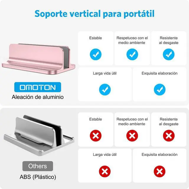 OMOTON Vertical Laptop Stand Holder, Desktop Aluminum Stand for MacBook with Adjustable Dock Size, Fits All MacBook, Surface, Chromebook and Gaming Laptops (Up to 17.3 inches), Rose Gold
