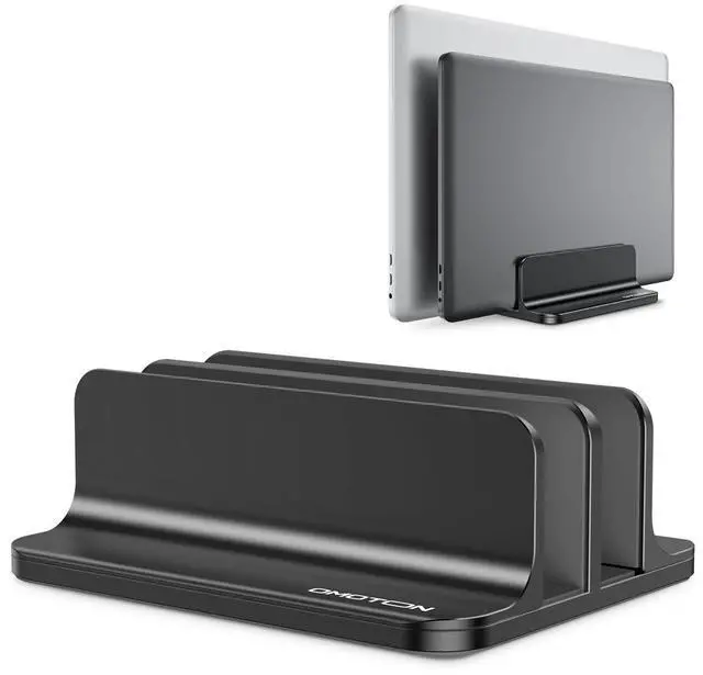 OMOTON Vertical Laptop Stand [Updated Double Version], Desktop Aluminum Mac Book Stand with Adjustable Dock Size, Fits All Mac Book, Surface, Chrome Book and Gaming Laptops (Up to 17.3 inch) (Black)