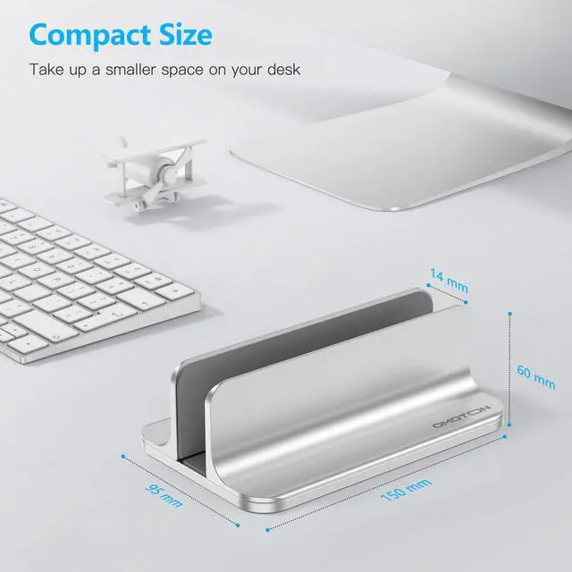 OMOTON Vertical Laptop Stand Holder, Desktop Aluminum Stand for MacBook with Adjustable Dock Size, Fits All MacBook, Surface, Chromebook and Gaming Laptops (Up to 17.3 inches), Silver