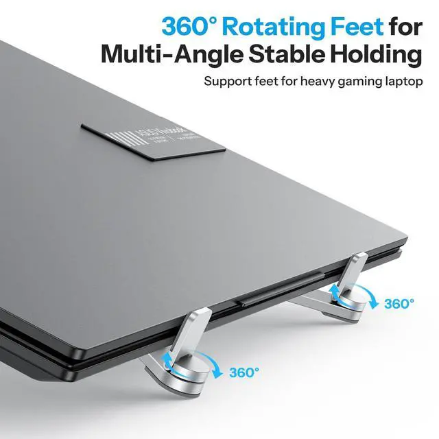 Support Feet: The portable laptop stand swivel support feet rotate freely to always lock in your device, ensuring no slip at any angle. It holds various thicknesses from thin tablets to thick gaming laptops securely ^^