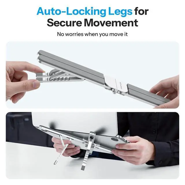 Auto-Locking Feet: This laptop stand features auto-locking support feet. You can move the Macbook stand without worrying about angle slippage even when picked up, eliminating the need for readjustment ^^ 6-Level