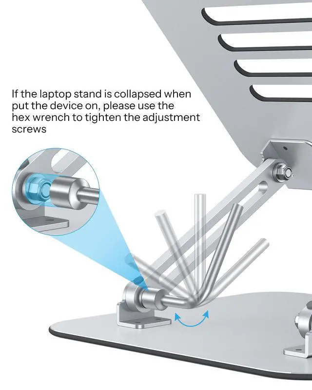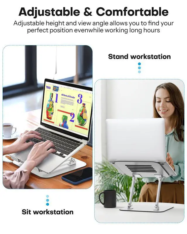 ^^ Stable & Durable: The laptop holder is made of solid metal, providing excellent stability for your laptop or tablet while using. Equipped with a silicone pad to protect your device from scratches ^^