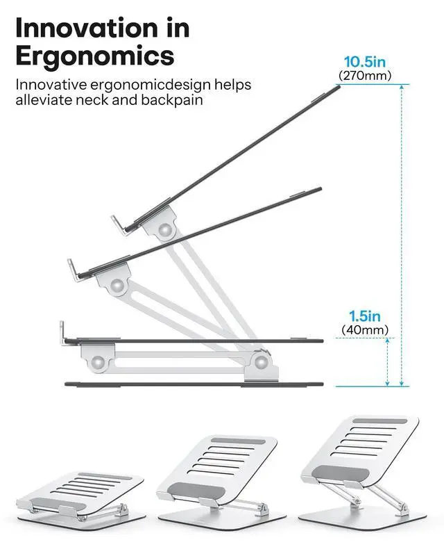 Adjustable & Ergonomic: This adjustable laptop stand boasts an ergonomic design that elevate your laptop to your optimal height and angle. Also you can use it while standing because it can be extended up to 270mm. Meets your daily needs, and preventing neck pain and other chronic medical conditions.