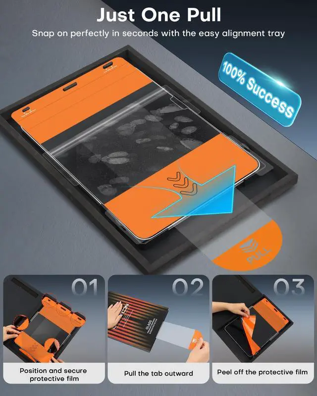 Effortlessly Simple Application: Experience the easiest installation process ever designed for a screen protector. Simply place your iPad into the application tray, then effortlessly press and pull the tab to lock the high-quality glass perfectly onto your screen. No complicated steps, no messy adhesives, and no frustration. Its installation made foolproofso simple youll hardly believe its done ^^
