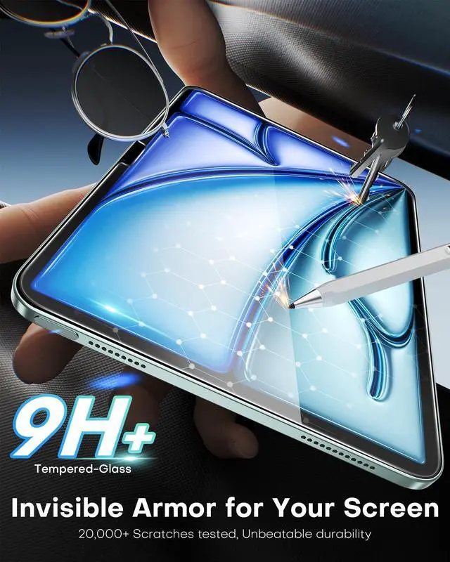 Industry-Leading Protection: Featuring our newly tempering process, this glass screen protector is perfectly designed for iPad Air 11 Inch M3/M2, offering full coverage and ultimate shatterproof protection. Rest assured that this high-quality film fits your iPad perfectly, ensuring superior defense against scratches, drops, and impacts ^^