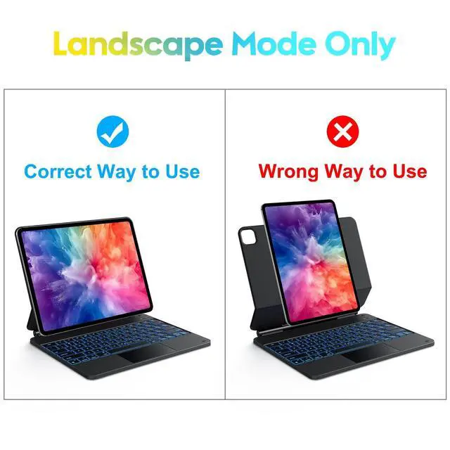 Model Name: iPad Pro 13-inch (M4) ^^ Easy Bluetooth Setup & Smart Power-Saving Quickly enter pairing mode by pressing Fn + B. Features an energy-saving sleep modeautomatically sleeps after 10 minutes of inactivity. Wake it instantly with a single press and resume work within 3 seconds ^^ Easy Bluetooth Setup & Smart Power-Saving Quickly enter pairing mode by pressing Fn + B. Features an energy-saving sleep modeautomatically sleeps after 10 minutes of inactivity. Wake it instantly with a single press and resume work within 3 seconds ^^ Landscape Mode OnlyThe magnetic attachment is specially designed for landscape mode only. Portrait mode is not supported and may result in an unstable connection ^^ Landscape Mode OnlyThe magnetic attachment is specially designed for landscape mode only. Portrait mode is not supported and may result in an unstable connection ^^