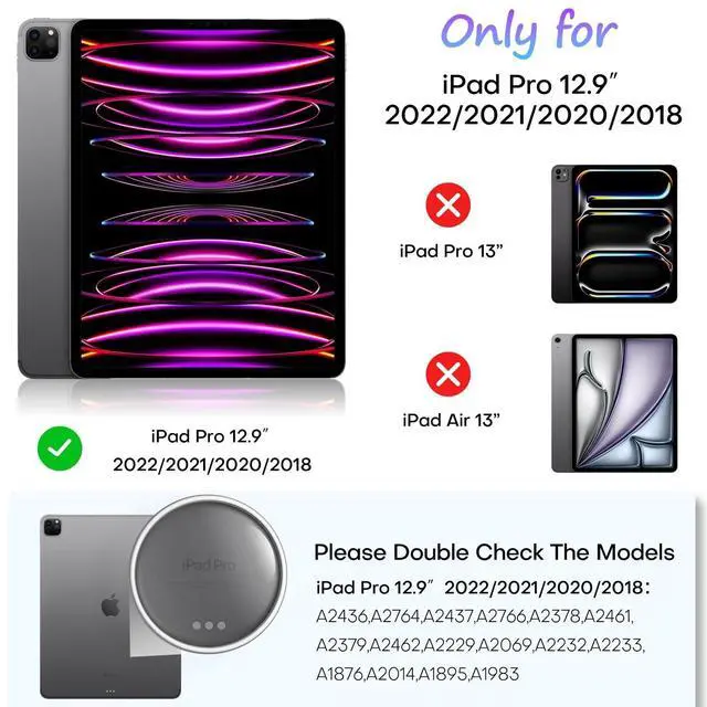 Compatible Model: Specifically designed for iPad Pro 12.9 inch 6th/5th/4th/3rd Gen 2022/2021/2020/2018 Release. Not for any other tablets. Please check your iPad Model before purchase ^^