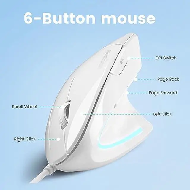 ERGONOMIC DESIGN - A right-handed vertical mouse that promotes a natural handshake position while using to prevent twisting the forearm while using and reduce muscular strain and repetitive strain injuries (RSI)