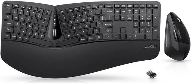 Perixx Periduo-605, Wireless Ergonomic Split Keyboard and Vertical Mouse Combo, Adjustable Palm Rest and Membrane Low Profile Keys, Black, US English Layout (11633)