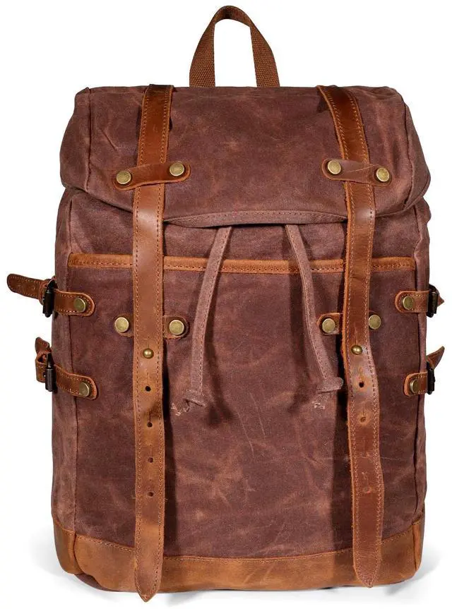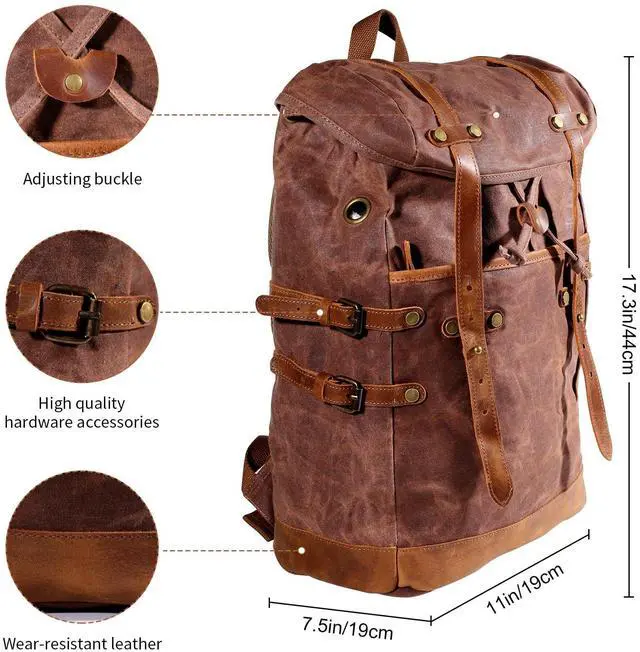 Chinsyi Waxed Canvas Leather Hiking Travel Waterproof Backpack for College Weekend Travel Fit 15in laptops