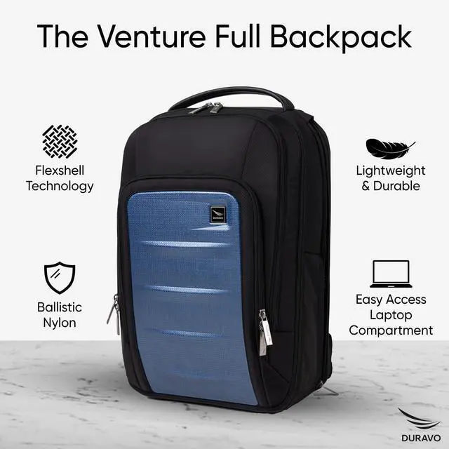 Duravo Venture Full Laptop Backpack, Durable, Sleek, Flight Approved, Fits Up to 17" Laptop, Breathable, Lightweight (Blue, Full)