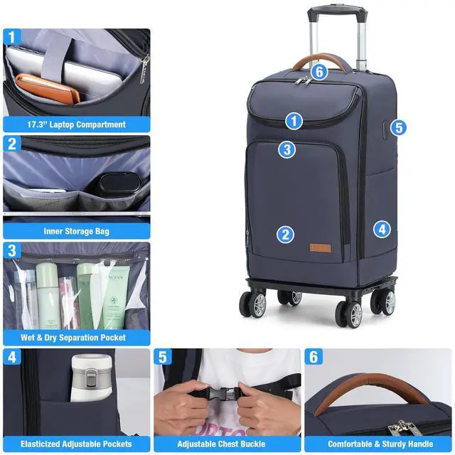 [2024 New Upgraded Version]-Lekebobor rolling backpack has been designed with functionality and comfort in mind. In order to make it more ergonomic, we have extended the length of the handle and added 360deg wheels to make it easier and more convenient for your daily travels, making it an indispensable travel companion!