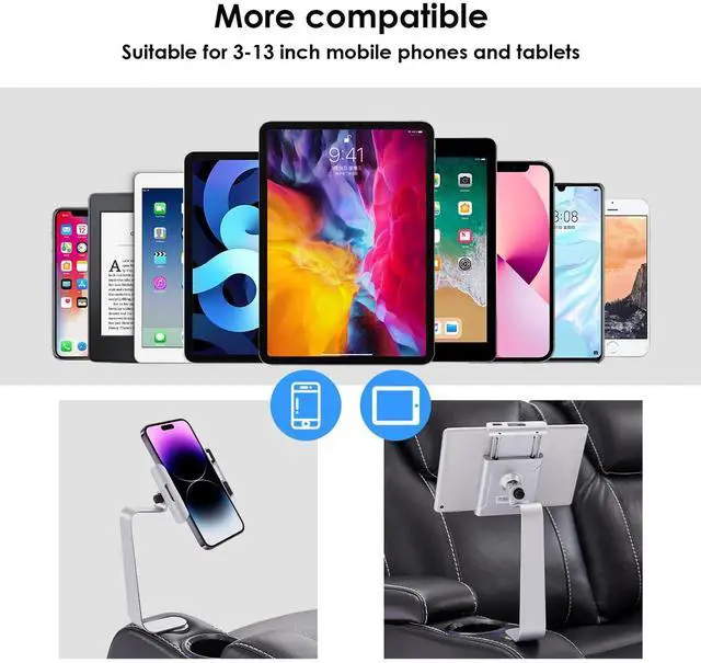 Versatile Design: Our family theater seat accessory mobile phone/iPad holder, meticulously designed to fit various smartphones/iPad tablet. Its adaptable design ensures that you can securely attach your phone regardless of its size or brand. Whether you own the latest iPhone or iPad device, our holder will keep your device firmly in place.