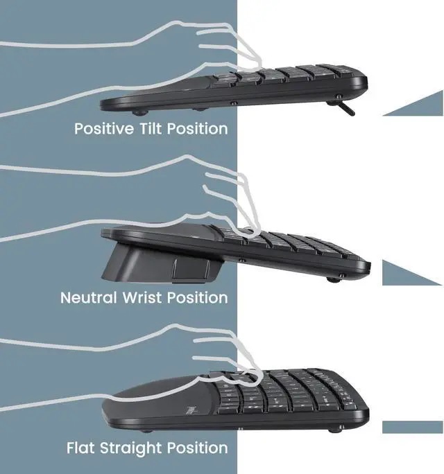 ALL-IN-ONE COMPACT COMBO - Mini keyboard and mouse value kit with split key design and without number pad area; Portable slim keyboard design with curved keytop geometry with naturally arched shape and integrated adjustable palm rest stand that promotes a neutral wrist position