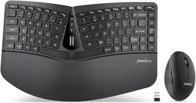 Perixx PERIDUO-606 Wireless Mini Ergonomic Keyboard with Portable Vertical Mouse - Adjustable Palm Rest Stand - Membrane Low Profile Keys - US English