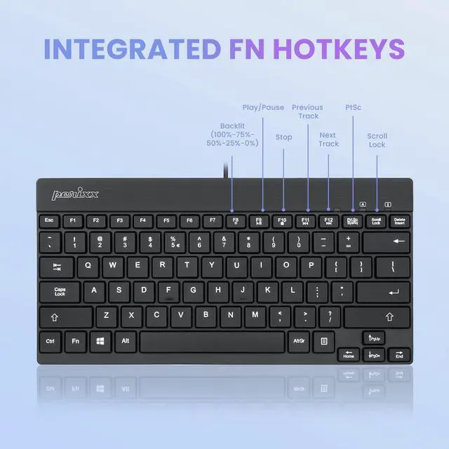 Perixx PERIBOARD-326 Mini Keyboard with Backlit Feature and Low Profile Keys