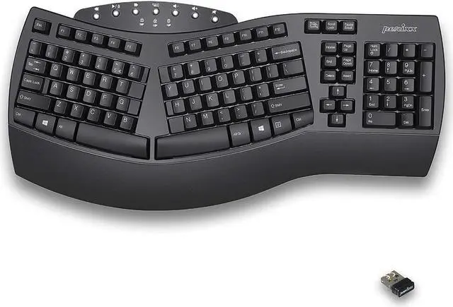 ERGONOMIC SPLIT-KEY DESIGN: Integrated palm rest supports your wrists, releases median nerve pressure and reduces forearm tension; Natural arm and hand position while typing minimize chances of RSI, and carpal tunnel syndrome