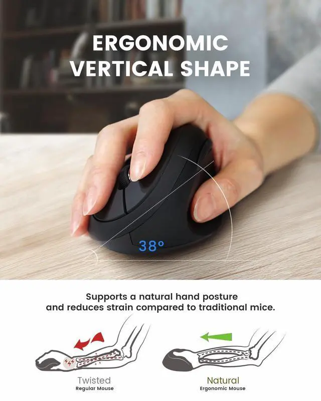 ERGONOMIC VERTICAL DESIGN - Designed with comfort in mind, this ergonomic vertical mouse is crafted for right-handed users. Its natural shape supports a more relaxed hand position, helping to reduce strain and ensure comfortable use during extended work sessions. Featuring six customizable buttons, it boosts productivity with ease.