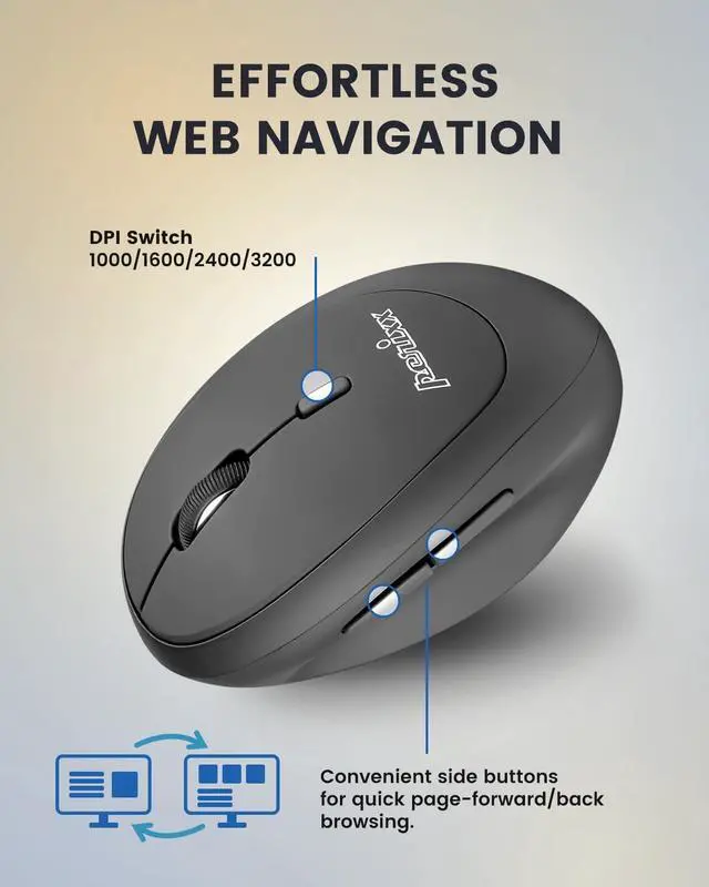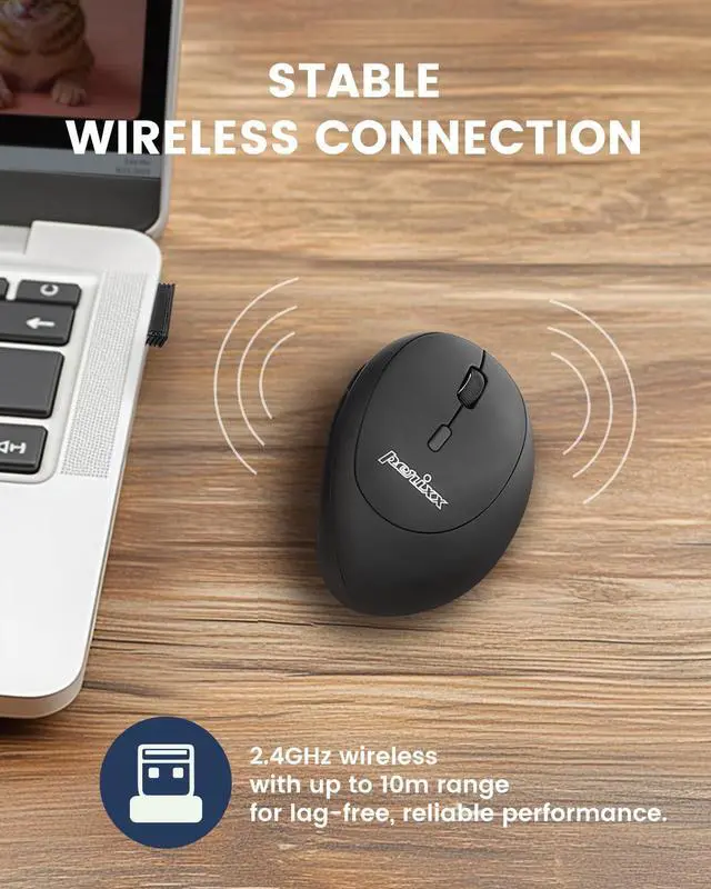 Perixx PERIMICE-719R Wireless 2.4G Rechargeable Ergonomic Mouse - Duo Wired and Wireless Charging Feature - Black