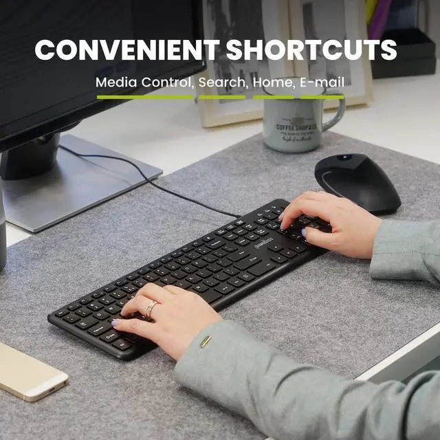 Perixx PERIBOARD-210 Full-Size Wired Keyboard A slim design keyboard with integrated number pad design. The scissor-key mechanism makes sure for every keypress to be stable and responsive. Enjoy a quiet and comfortable typing experience doing your daily tasks. The wired design is very convenient to use for everyday home and office use, because it offers a reliable connection and you don't have to worry about purchasing*
