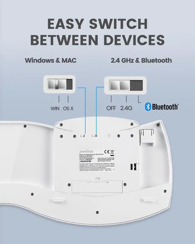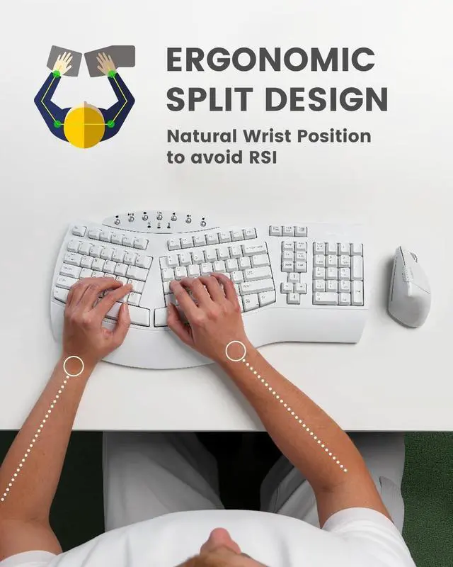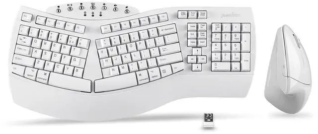 Experience all-day comfort and wireless flexibility with the Perixx PERIBOARD-612W and PERIMICE-813W a thoughtfully designed ergonomic keyboard and vertical mouse combo. The PERIBOARD-612W features a split-key layout and integrated palm rest, promoting a natural typing posture to reduce wrist strain. It supports dual-mode connectivity ( 2.4GH z and Bluetooth), and includes extra switchable keys for Mac and Windows compatibility. Paired with the PERIMICE-813W vertical mouse, you get ergonomic control in a handshake position that eases forearm tension. The mouse offers three wireless modes 2.4GH z, Bluetooth 5.0, and 3.0 and can connect to up to three devices simultaneously.