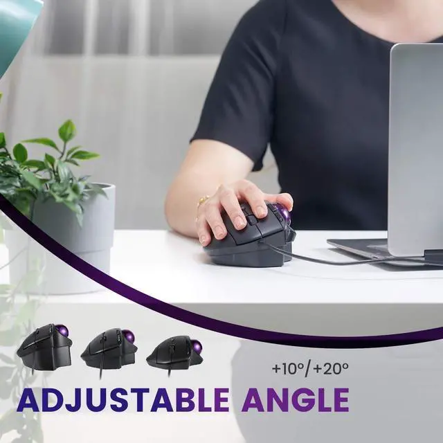 • ADJUSTABLE ANGLE: A unique detachable stand to customize the angle of the mouse from 0 to 10 or 20 degrees to minimize strains on wrist and arms
