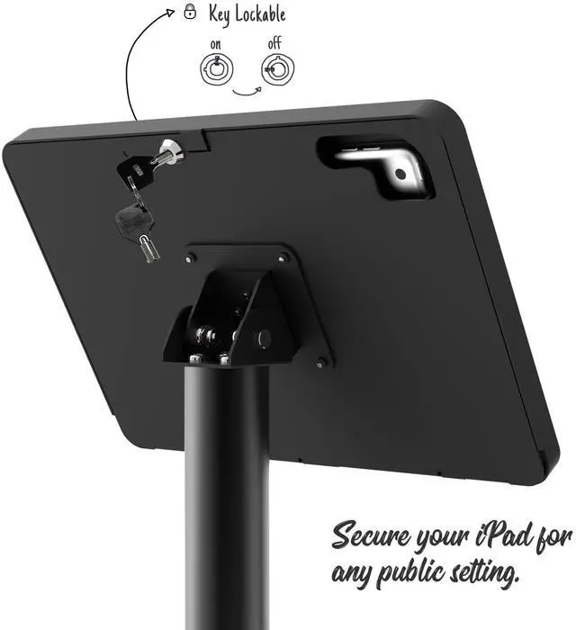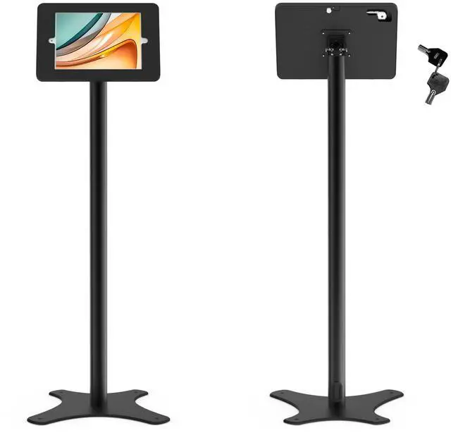 ^^ Key Lockable and Easy Installation. Anti-theft with key locked on the rear panel of the floor stand. Worry free for iPad stealing. Easy installation and very friendly for people who need to take out the iPad every day. ^^ Rotatable and Flexible. The strong metal hinge of the tablet floor stand offers 120-degree rotation. Find your ideal displaying angle. ^^ Cable Management. Keep the major part of cable hidden, tidy up the space and lower down the trip hazards. Compatible model 2021 iPad 9th