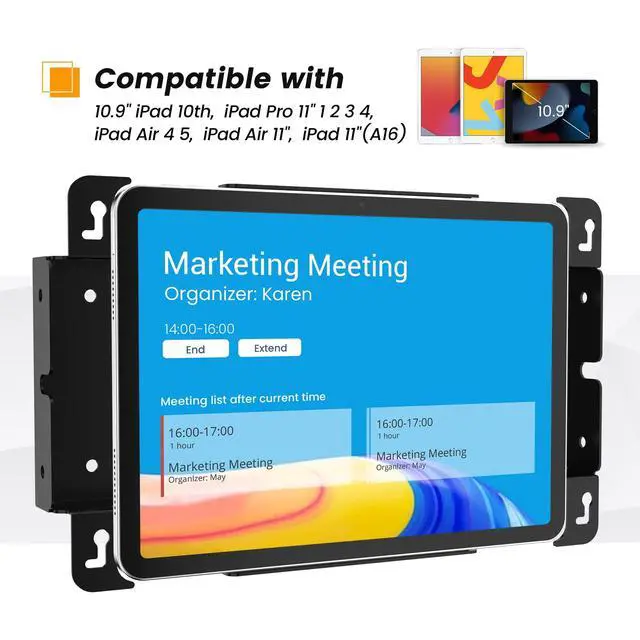 Compatible with 10.9" iPad 10th, Pro 11" 1 2 3 4, Air 4 5, Air 11", iPad 11" (A16) - Perfect fit and secure placement. ^^ Versatile Installation Options for Various Settings - Mount your tablet wall mount in three different ways - on the door frame, mount against the wall, or recessed into the wall, catering to different installation scenarios. ^^ Easy Assembly - This tablet wall mount offers hassle-free panel assembly without screws, ensuring convenience and simplicity. ^^ Support Both Landscape and Portrait installation - Ideal for various applications.