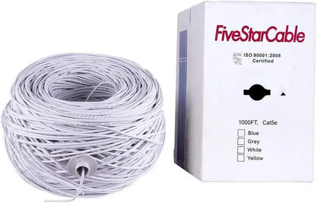 FiveStarCable Cat5e 1000 Ft 24AWG UTP 4 Twisted Pair Ethernet Router LAN Cable Wire Pull Box - White Color