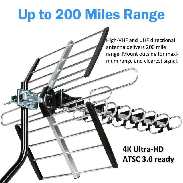 [2025 UPDATED YAGI OUTDOOR ANTENNA] Experience crystal-clear 1080p and 4K reception spanning up to 200 miles from TV transmitters with our advanced outdoor TV antenna (the number of TV stations you can recieve depends on your location and geography. The signal strength depends on how far away you are from TV transmitters). Enjoy superior reception for both VHF and UHF signals, empowering you to break free from expensive cable or satellite bills and save significant money.