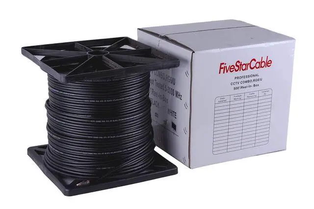RG6/U 18AWG 75ohm Center Conductor. Black Color ^^ 60% braid with bonded foil shield ^^ Attached 2 Stranded 18AWG 7x 0.385 mm Black/Red Power Cable ^^ Ideal for CATV, satellite, TV antenna, or broadband internet, can also use for CCTV Surveillance System installation and and other analog video signals. Or equipment uses higher frequencies (above 50 MHz), ^^ ISO 9000 Certified* ETL Listed. 500ft Spool Reel in box