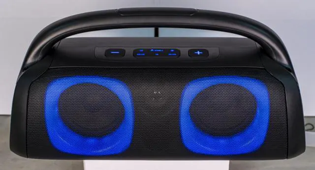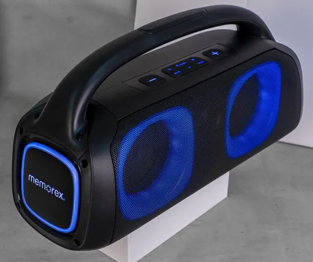 Whether indoors or outdoors, this speaker provides the perfect blend of performance, aesthetics, and convenience. Upgrade your music experience with the Memorex MX-BTS300 Pump Box Rechargeable Bluetooth Speaker where powerful sound meets stunning visuals. Order yours today and turn up the volume on every occasion!