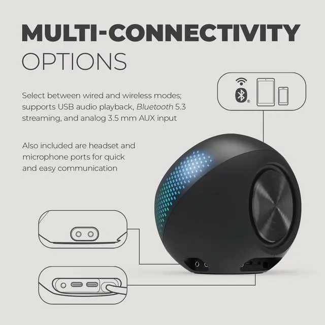 MULTIPLE SETUP OPTIONS - The Creative Pebble X offers an audio boost when connected via USB and offers wireless as well as analog connectivity with Bluetooth 5.3 and a universa