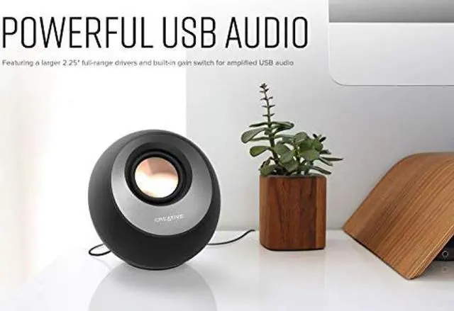 With a larger custom-tuned 2.25" full-range drivers, the Creative Pebble V3 is now 50% louder, and delivers richer, more powerful audio, with enhanced bass reproduction. Additionally, you can push your audio further with a built-in gain switch for amplified audio (requires a 10W USB-C or USB-A port) and firing acoustics power of 8W RMS and peak power of up to 16W